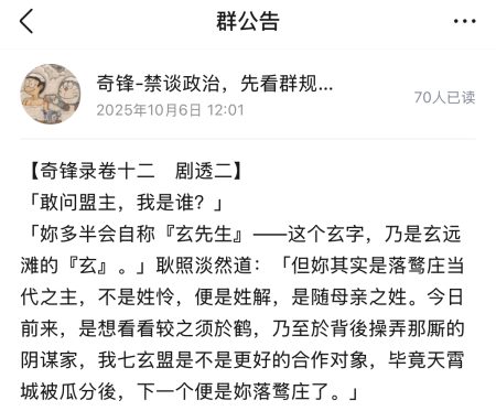 「妳多半会自称『玄先生』——这个玄字,乃是玄远滩的『玄』。」耿照淡然道:「但妳其实是落鹜庄当代之主,不是姓怜,便是姓解,是随母亲之姓。今日前来,是想看看较之须於鹤,乃至於背後操弄那厮的阴谋家,我七玄盟是不是更好的合作对象,毕竟天霄城被瓜分後,下一个便是妳落鹜庄了。」