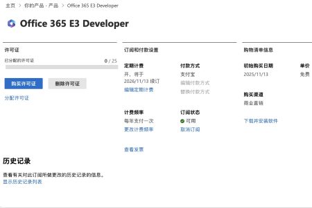 若页面未直接显示自动续费选项,可在订阅激活后返回“订阅管理”界面,找到已开通的Office 365 E3订阅,点击“管理”,在“续费选项”中手动开启“自动续费”,并设置续费周期为“1年”,确保服务不会中途中断。